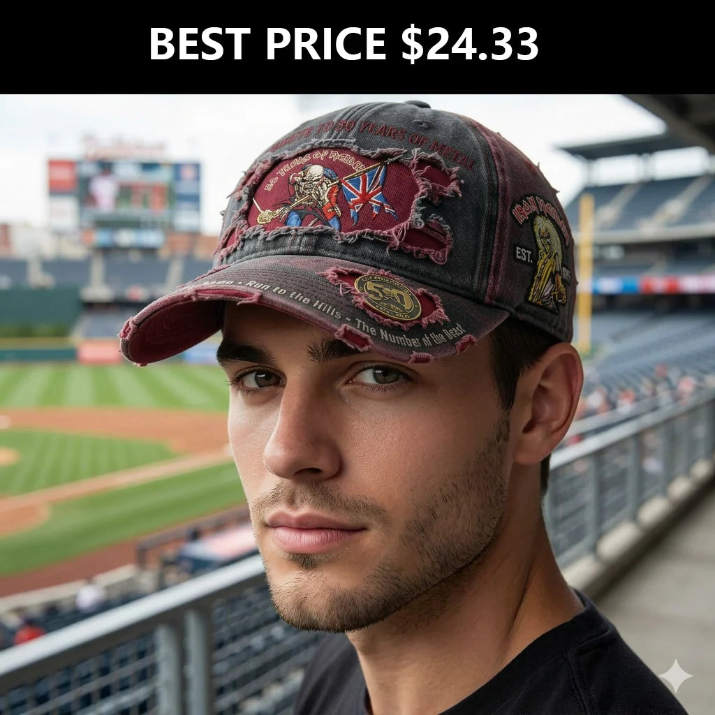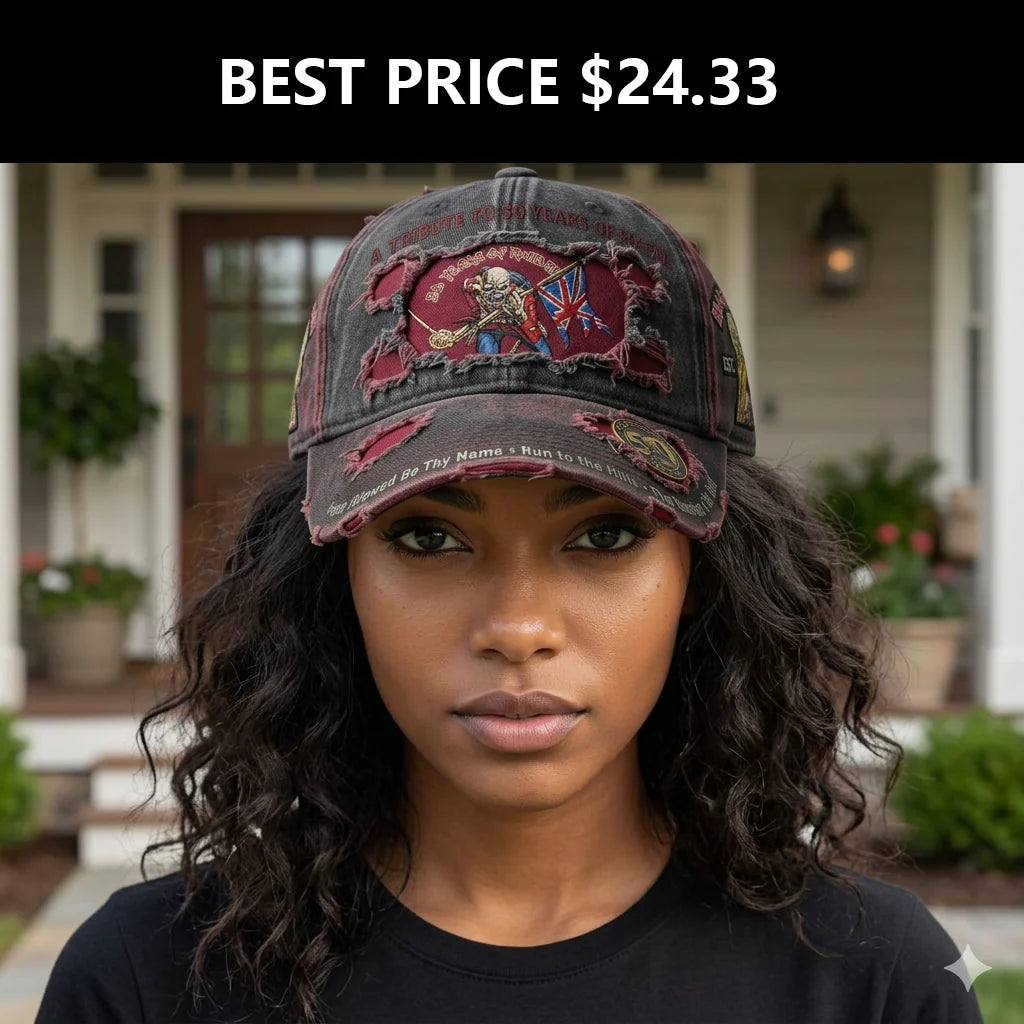 Celebrate five decades of heavy metal with the Iron Maiden 50th Anniversary Tribute Cap. This rugged, distressed cap combines iconic band imagery with premium detailing to honor 50 years of legendary music. Featuring Eddie, the Union Jack, and classic Iron Maiden logos, it’s a bold statement piece for any fan.