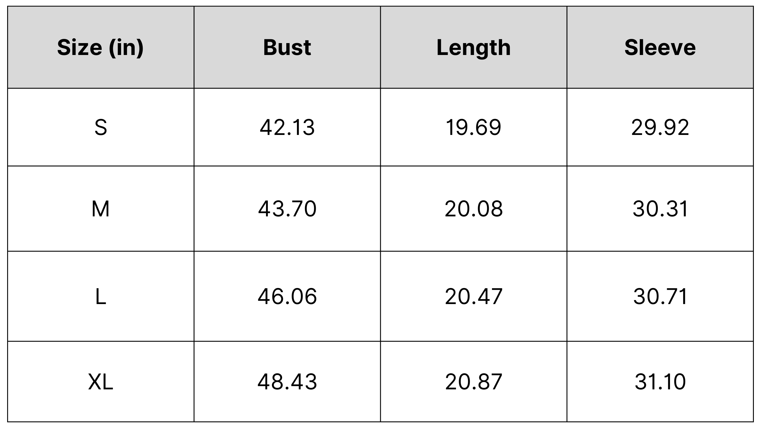 Size Chart: