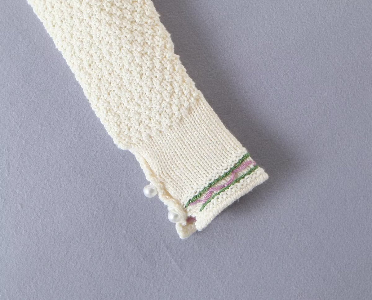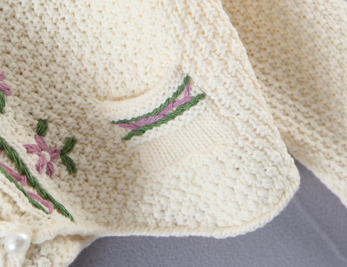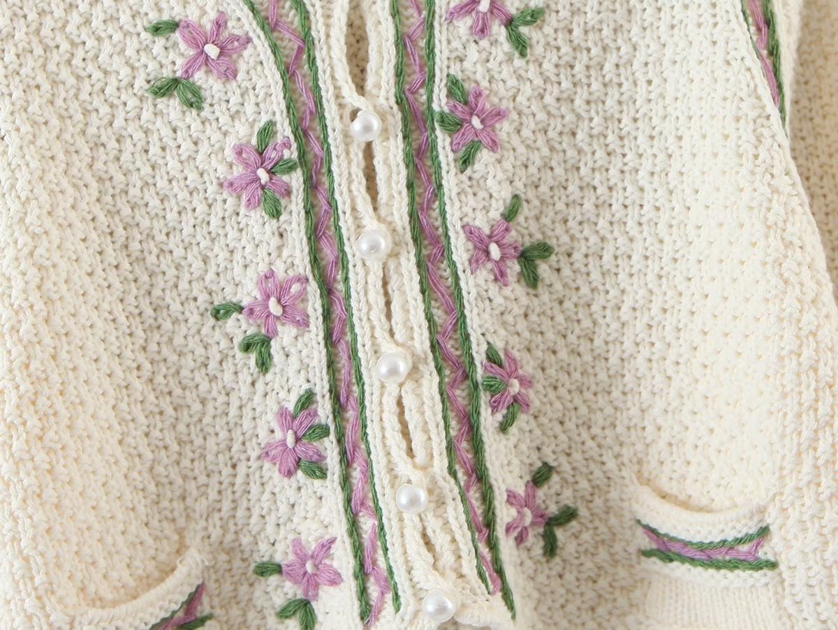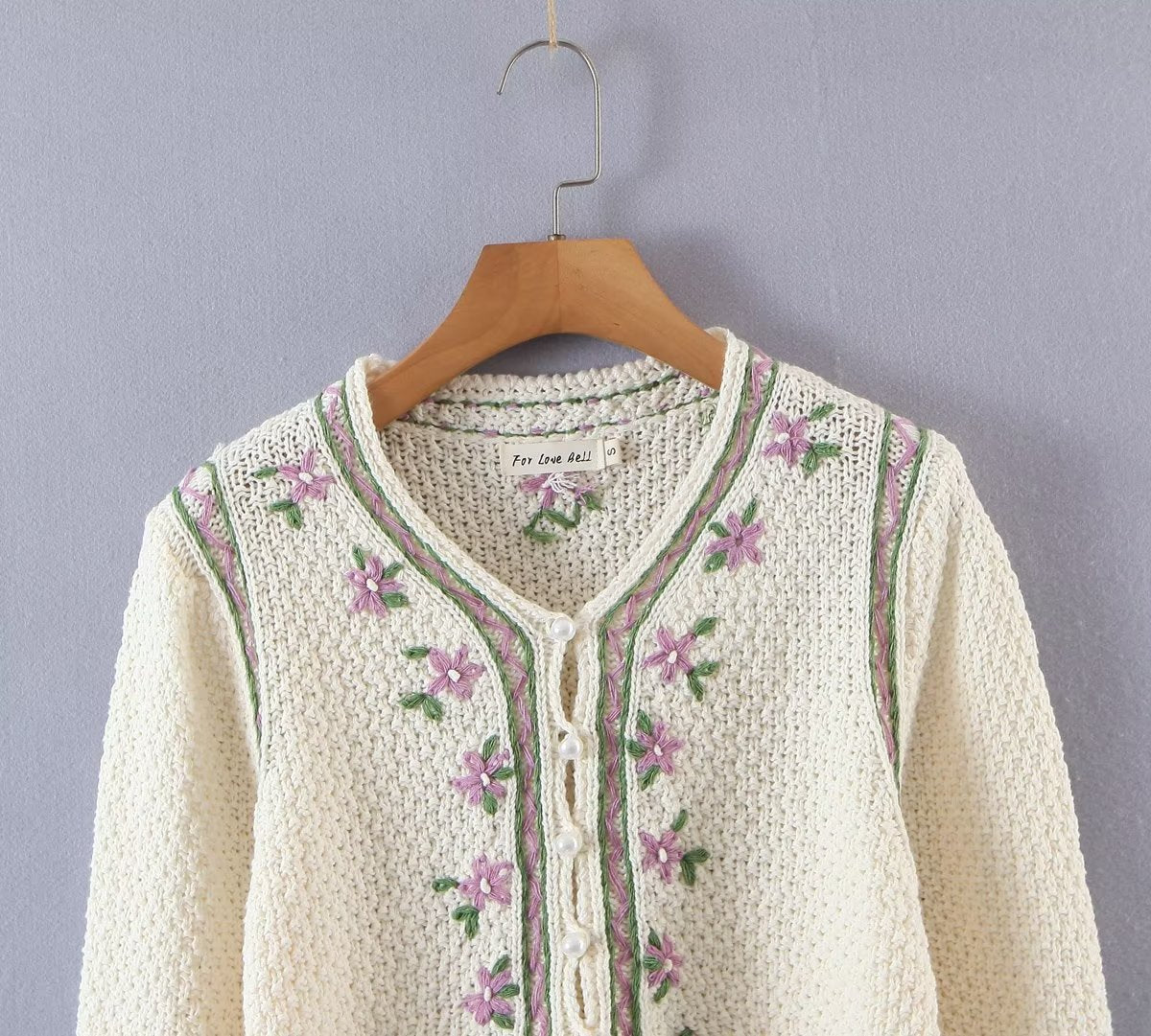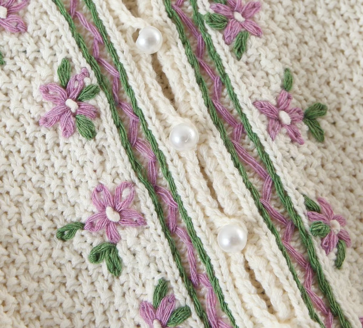 Channel vintage charm and ethereal vibes with Daisy Bloom Embroidered Cropped Cardigan, an intricate layer that’s equal parts cozy and romantic. This delicate, cropped cardigan features hand-embroidered floral details in soft lilac and green tones, with whimsical stripes adding a nostalgic twist. The lightweight, open knit is finished with scalloped edges for an added touch of sweetness, perfect for those who love a dash of cottagecore flair in their wardrobe.