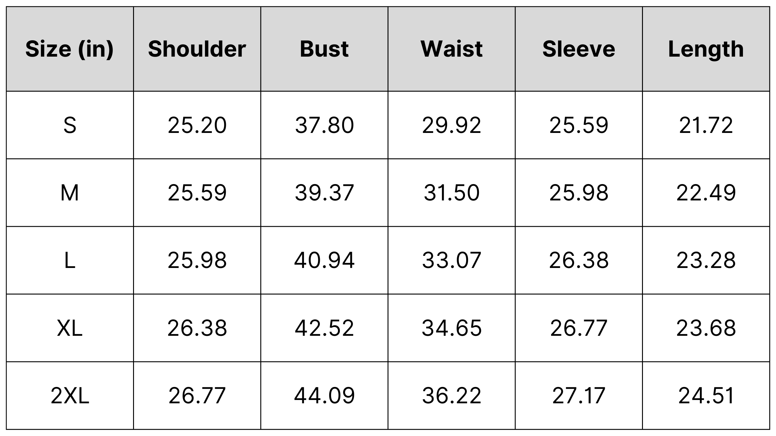 Size Chart: